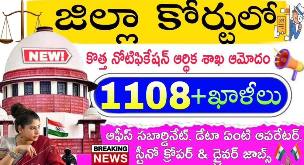ఈ నోటిఫికేషన్ లో జిల్లా కోర్టులో 1,108 ఔట్ సోర్సింగ్ ఉద్యోగాలను భర్తీ చేయడానికి ఆర్థిక శాఖ అనుమతి ఇవ్వడం జరిగింది.
