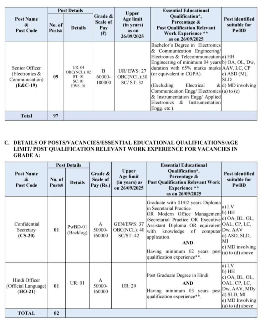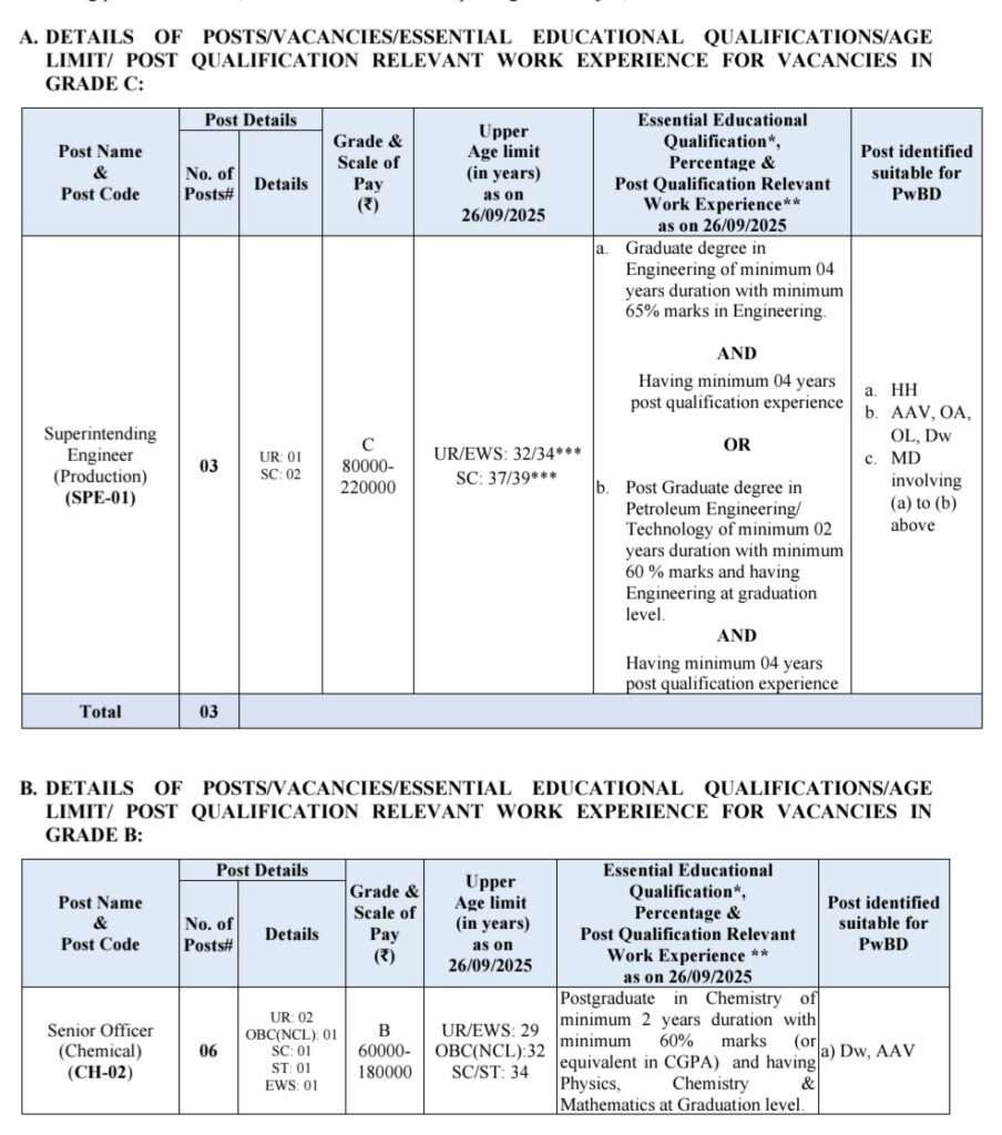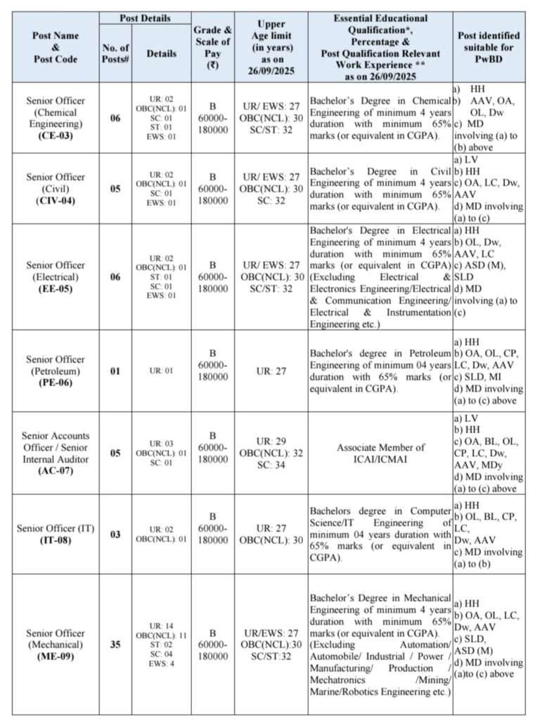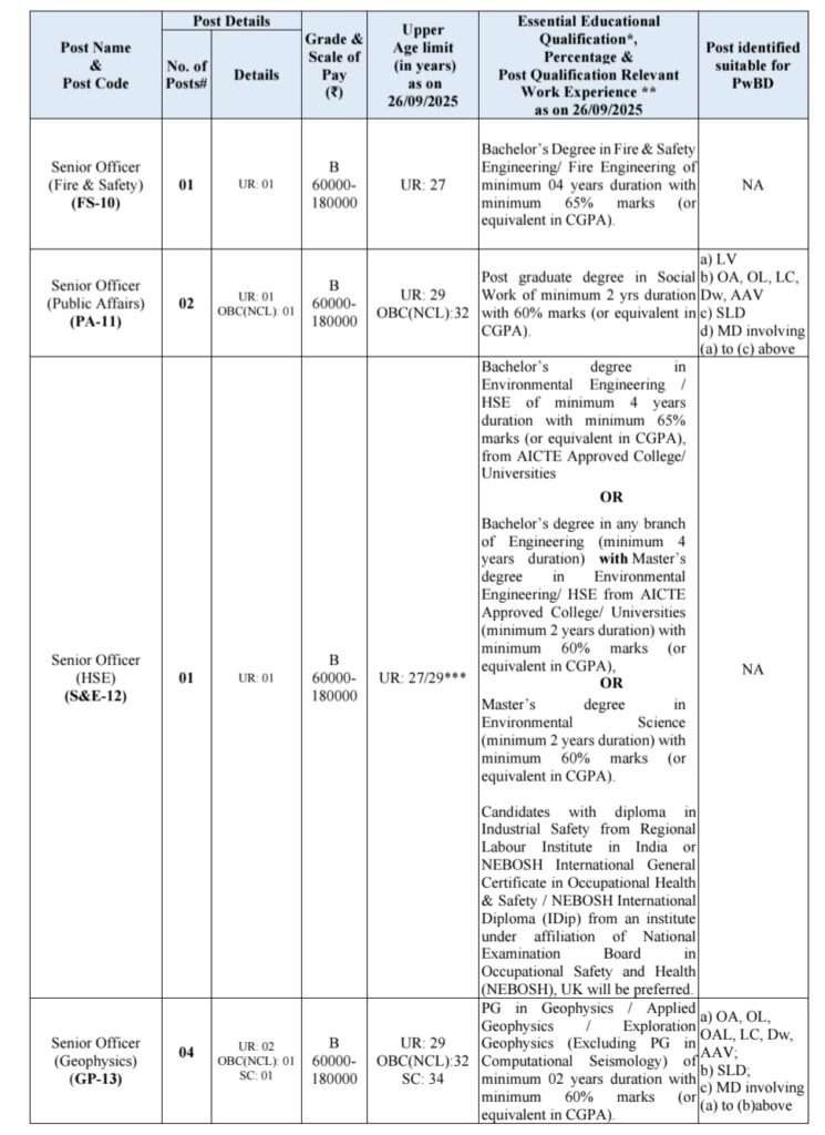 అర్హత : పోస్ట్ ను అనుసరించి (ఇంజనీరింగ్, ఫైనాన్స్, HR, IT, లా, జియాలజీ, మొదలైనవి) బ్యాచిలర్/మాస్టర్స్ డిగ్రీ సర్టిఫికేట్ కలిగి ఉండాలి.