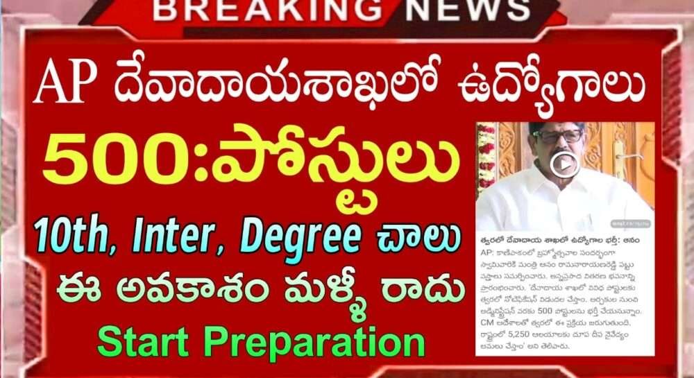AP దేవాదాయ శాఖలో త్వరలో 500 ఉద్యోగాల భర్తీ కి నోటిఫికేషన్