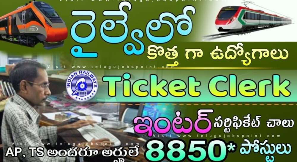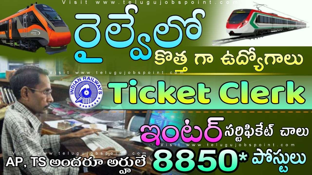 »పోస్టుల వివరాలు: చీఫ్ కమర్షియల్ కమ్ టికెట్ సూపర్వైజర్, స్టేషన్ మాస్టర్, గూడ్స్ రైలు మేనేజర్, జూనియర్ అకౌంట్ అసిస్టెంట్ కమ్ టైపిస్ట్, సీనియర్ క్లర్క్ కమ్ టైపిస్ట్ & ట్రాఫిక్ అసిస్టెంట్ పోస్టులు కేటగిరీస్ గ్రాడ్యుయేట్ మరియు కమర్షియల్ కమ్ టికెట్ క్లర్క్, అకౌంట్స్ క్లర్క్ కమ్ టైపిస్ట్, జూనియర్ క్లర్క్ కమ్ టైపిస్ట్ & రైళ్లు క్లర్క్ ఉద్యోగుల భర్తీ చేస్తున్నారు. మొత్తం పోస్టు 8850 ఉన్నాయి.