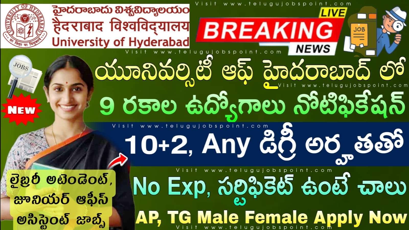 Library Attendant Jobs : కేవలం 10+2 అర్హతతో విద్యా మంత్రిత్వ శాఖలో లైబ్రరీ అటెండెంట్ నోటిఫికేషన్ వచ్చేసింది | University of Hyderabad Recruitment 2025 Apply Now