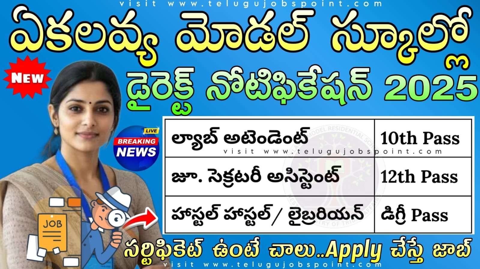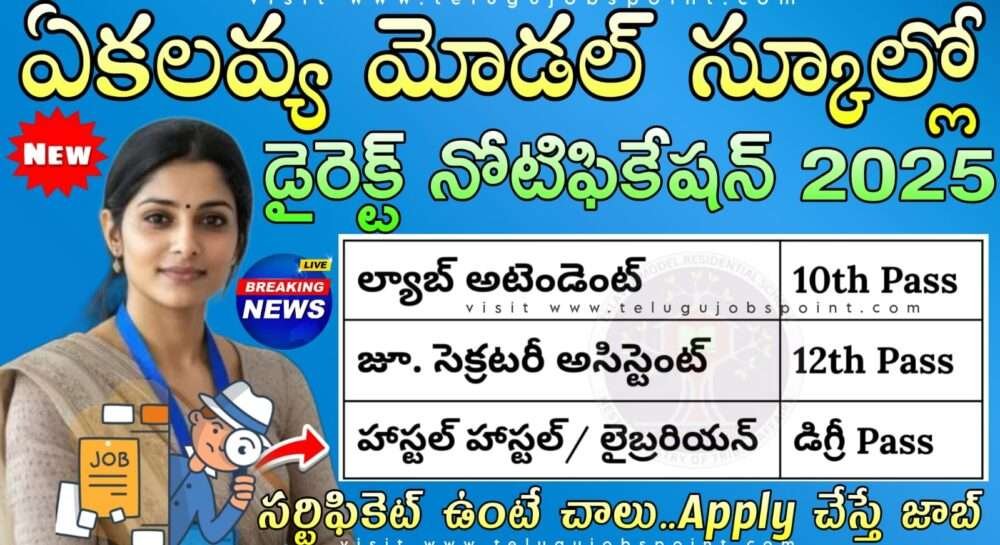 Eklavya Model Residential Schools (EMRS)Teaching & Non-Teaching Notification 2025 : ప్రభుత్వ స్కూళ్లలో ఉద్యోగం కోసం ఎదురుచూస్తున్న అభ్యర్థులకు శుభవార్త.. కేవలం 10వ తరగతి పాసైన అభ్యర్థులు కేంద్ర ప్రభుత్వ ఆధ్వర్యంలో కేంద్ర గిరిజన వ్యవహారాల మంత్రిత్వ శాఖ సంబంధించిన ఏకలవ్య మోడల్ రెసిడెన్సి స్కూల్ (EMRS) లలో భారీ నోటిఫికేషన్ విడుదల చేయడం జరిగింది.