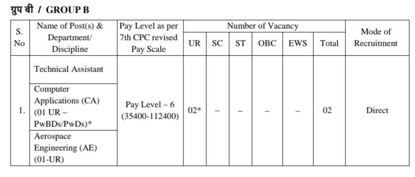 పోస్ట్ పేరు :: టెక్నికల్ అసిస్టెంట్, సీనియర్ టెక్నీషియన్, సీనియర్ అసిస్టెంట్, జూనియర్ అసిస్టెంట్, అటెండెంట్ & ఆఫీస్ అటెండెంట్ పోస్టులు భర్తీ.