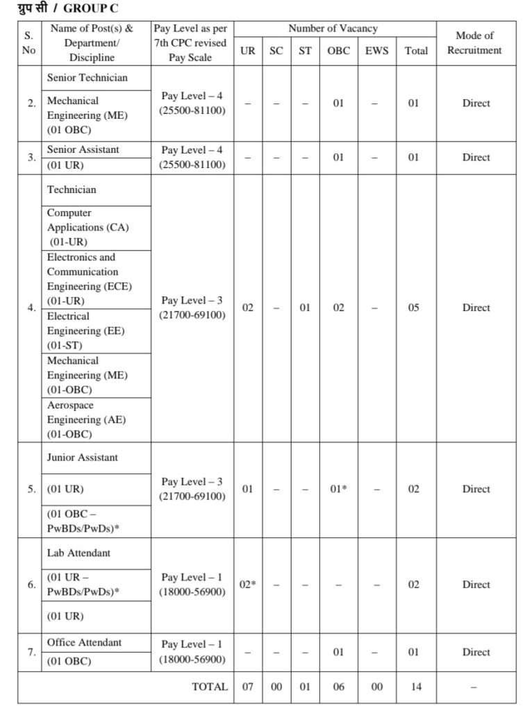 »పోస్టుల వివరాలు: టెక్నికల్ అసిస్టెంట్, సీనియర్ టెక్నీషియన్, సీనియర్ అసిస్టెంట్, జూనియర్ అసిస్టెంట్, అటెండెంట్ & ఆఫీస్ అటెండెంట్ ఉద్యోగుల భర్తీ చేస్తున్నారు. మొత్తం పోస్టు 14 ఉన్నాయి.