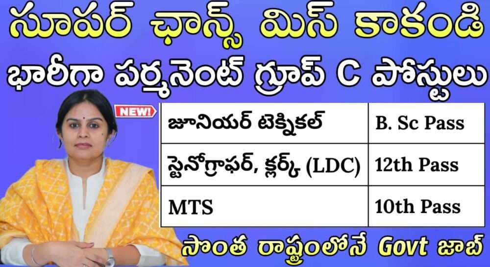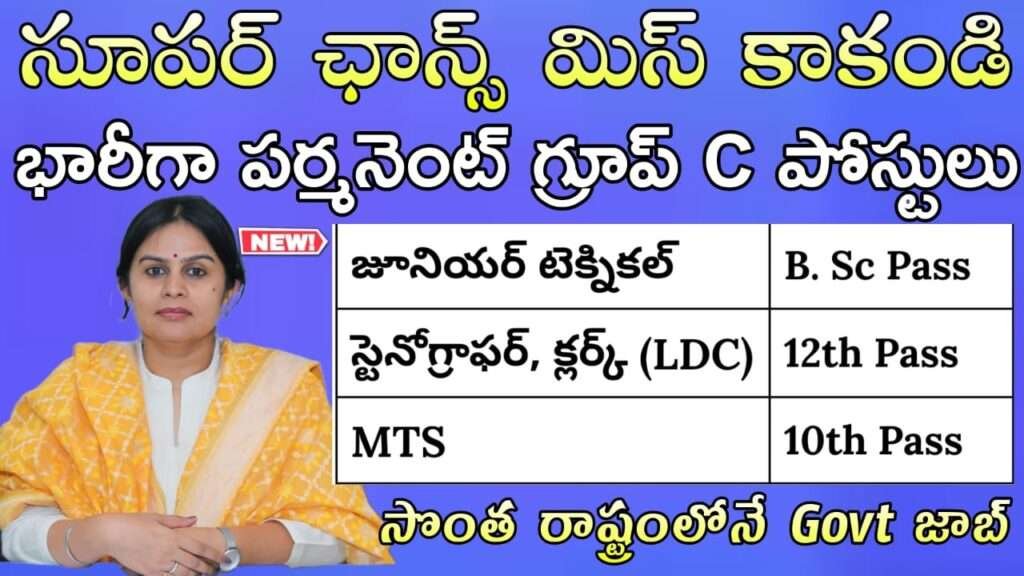 పోస్ట్ పేరు :: జూనియర్ టెక్నికల్ ట్రైనింగ్ ఇన్స్ట్రక్టర్, స్టెనోగ్రాఫర్ గ్రేడ్, మల్టీ-టాస్కింగ్ స్టాఫ్ (MTS), వాషర్మ్యాన్/ధోబి, లోయర్ డివిజన్ క్లర్క్ (LDC) పోస్టులు భర్తీ.