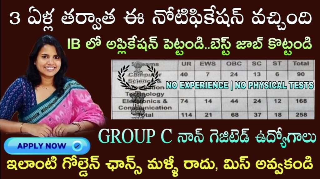 »ఎంపిక విధానం: ఇంటెలిజెన్స్ బ్యూరోలో రాత పరీక్ష, ఇంటర్వ్యూ & డాక్యుమెంట్ వెరిఫికేషన్ ద్వారా సెలక్షన్ ఉంటుంది.