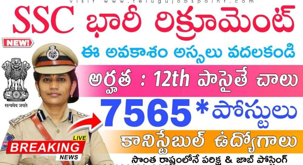 SSC Constable 2025 : 10+2 అర్హతతో 7,565 కానిస్టేబుల్ ఉద్యోగుల కోసం అక్టోబర్ 31 వరకు గడువు పొడిగింపు