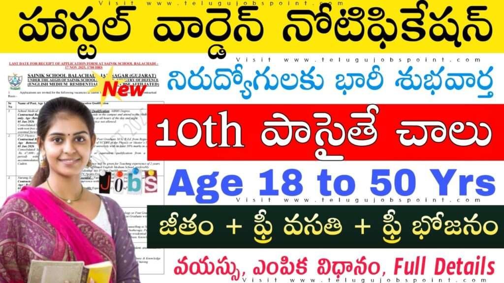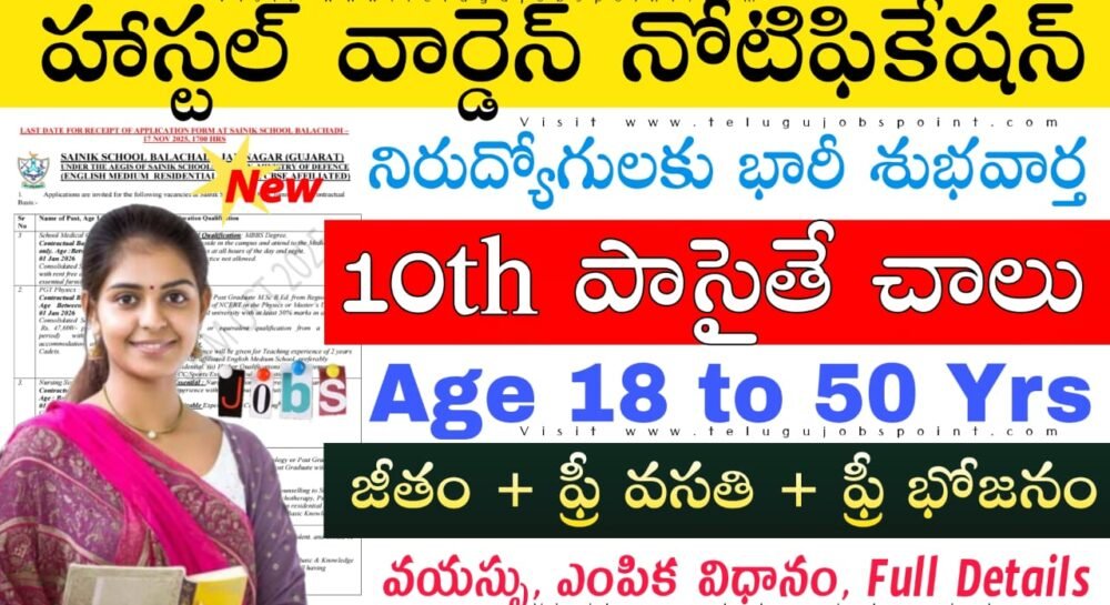 10th అర్హతతో హాస్టల్ వార్డెన్ నోటిఫికేషన్ | ఉచితంగా భోజనం మరియు వసతి ఇస్తారు | Sainik School Balachadi Ward Boys Recruitment 2025 Apply Now