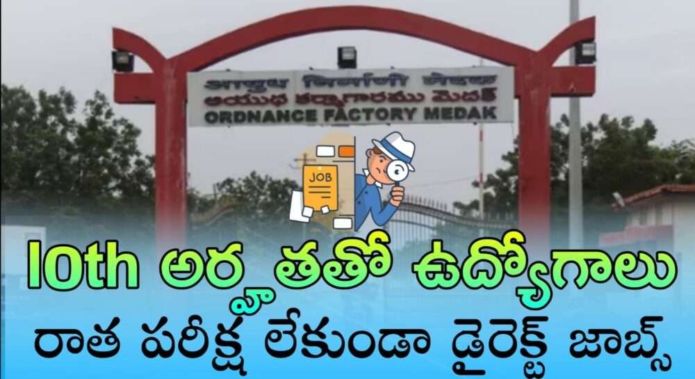 చిరునామా : “The Deputy General Manager/HR, Ordnance Factory Medak, Yeddumailaram, Dist. Sanga Reddy, Telangana -502205 “.