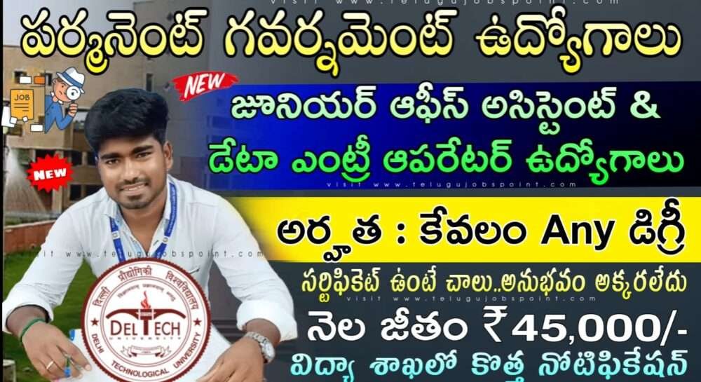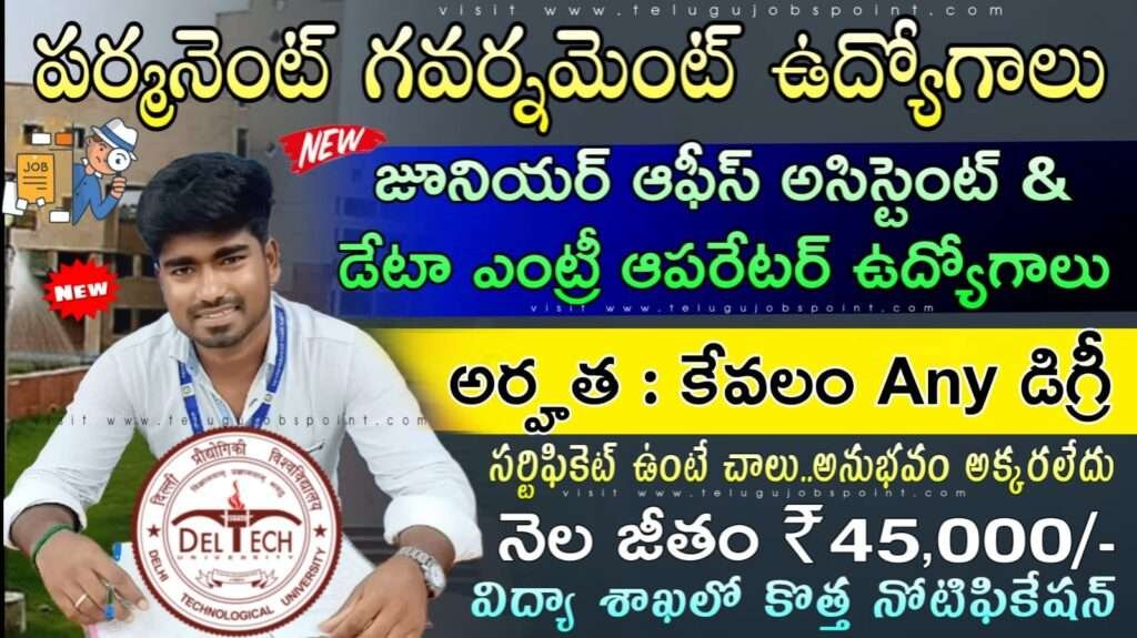 Permanent Jobs : Any డిగ్రీ అర్హతతో జూనియర్ ఆఫీస్ అసిస్టెంట్ & డేటా ఎంట్రీ ఆపరేటర్ ఉద్యోగ నోటిఫికేషన్ |DTU Delhi Non Teaching Recruitment 2025 Jr Office Assistant and Data Entry Operator Notification 2025 Apply Now