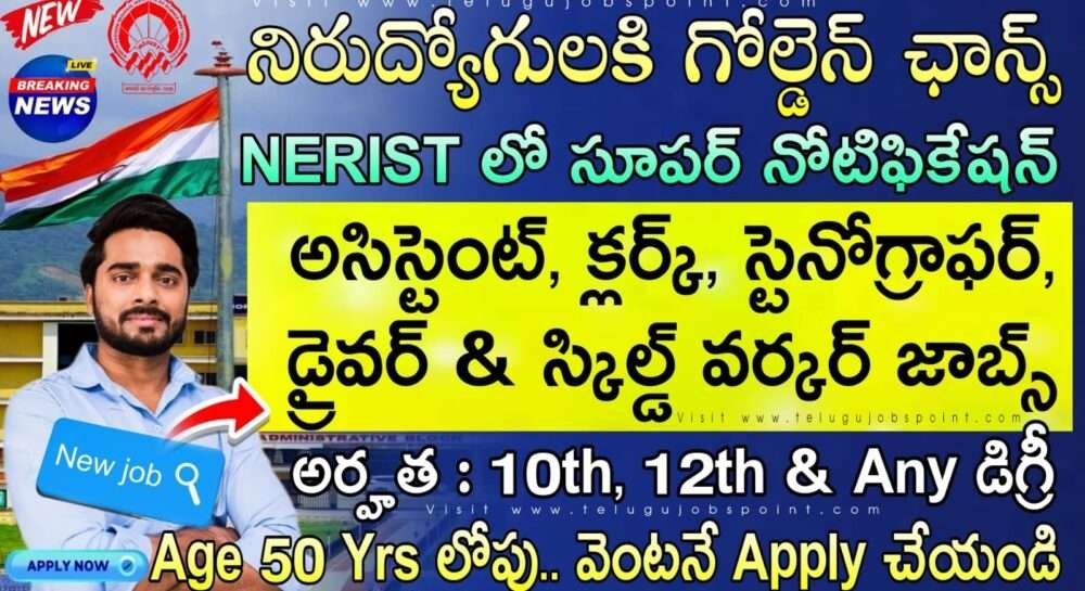 NERIST Recruitment 2025 Latest Stenographer, Lower Division Clerk & Skilled Worker Jobs Notification Apply Now: నిరుద్యోగులకి గోల్డెన్ ఛాన్స్.. కేవలం పదో తరగతి, ఇంటర్ పాస్ అయిన అభ్యర్థులకి కేంద్ర ప్రభుత్వ పర్మనెంట్ ఉద్యోగం.. భారత ప్రభుత్వ విద్యా మంత్రిత్వ శాఖ కింద ఈస్టర్న్ రీజినల్ ఇన్స్టిట్యూట్ ఆఫ్ సైన్స్ & టెక్నాలజీ (NERIST) లో బోధనేతర పోస్టులు నియామకం కోసం భారత పౌరుల నుండి నిర్ణీత ఫార్మాట్‌లో దరఖాస్తులు ఆహ్వానించబడ్డాయి. ఆసక్తి ఉన్న అభ్యర్థులు వివరాల కోసం NERIST వెబ్‌సైట్ www.nerist.ac.in ని సందర్శించవచ్చు. చివరి తేదీ 7 జనవరి 2026 లోపల అప్లై ఆఫ్ లైన్ లో చూసుకోవాలి.
