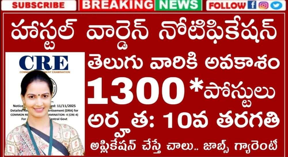 నిరుద్యోగులకు భారీ శుభవార్త.. ఆంధ్ర మరియు తెలంగాణలో ఆల్ ఇండియా ఇన్స్టిట్యూట్ ఆఫ్ మెడికల్ సైన్సెస్ (AIIMS)లో కామన్ రిక్రూట్‌మెంట్ టెస్ట్ 4 (CRE 4) కొత్త నోటిఫికేషన్ విడుదల చేశారు. ఈ నోటిఫికేషన్ ద్వారా AIIMS ఆసుపత్రులలో ఖాళీగా ఉన్న 1300 కి పైగా నాన్ ఫ్యాకల్టీ గ్రూప్ బి & సి ఉద్యోగాలు భర్తీ చేస్తున్నారు. టెన్త్ ఆపై చదివిన ఆసక్తిగల మరియు అర్హత కలిగిన అభ్యర్థులు ఆన్లైన్ లో aiimsexams.ac.in ని వెంటనే దరఖాస్తు చేసుకోండి. AIIMS దరఖాస్తు ప్రక్రియ ప్రారంభం 14 నవంబర్ మరియు దరఖాస్తు ముగింపుతేదీ 02 డిసెంబర్ 2025. ఇలాంటి నోటిఫికేషన్ మళ్లీ రాదు అర్హులు అయితే వెంటనే అప్లై చేసుకోండి. నిరుద్యోగులకు చక్కటి అవకాశం. తక్కువ క్వాలిఫికేషన్ తో పెర్మనెంట్ ఉద్యోగాలు సొంత జిల్లాలో పొందవచ్చు.