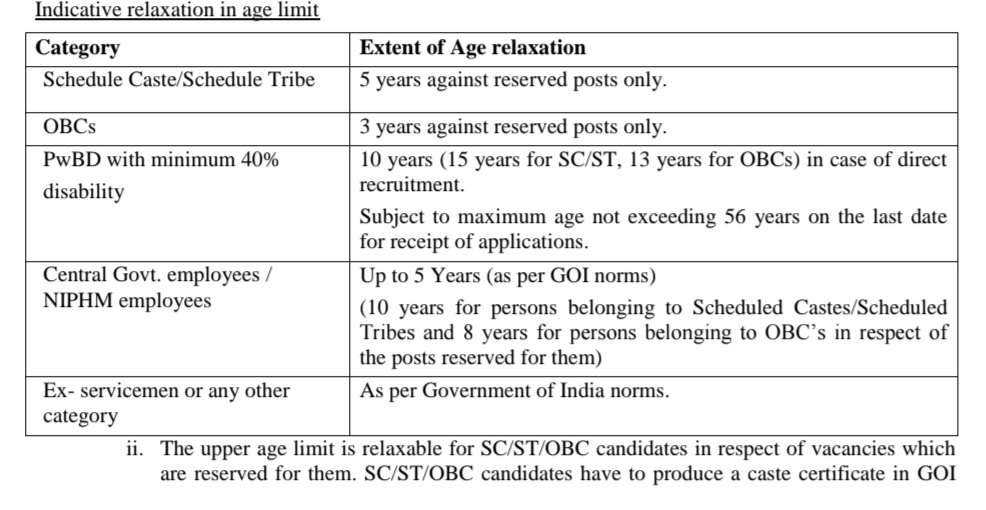 »వయోపరిమితి: వయస్సు (25.12.2025 నాటికి) జాయింట్ డైరెక్టర్ పోస్టుకు 55 సంవత్సరాల వరకు, అసిస్టెంట్ డైరెక్టర్ పోస్టుకు 45 సంవత్సరాల వరకు ల్యాబ్ అటెండెంట్ (కేటగిరీ-III) 18-27 సంవత్సరాలు SC/ST/OBC అభ్యర్థులకు వారికి కేటాయించిన ఖాళీలకు సంబంధించి గరిష్ట వయోపరిమితిలో సడలింపు ఉంటుంది.