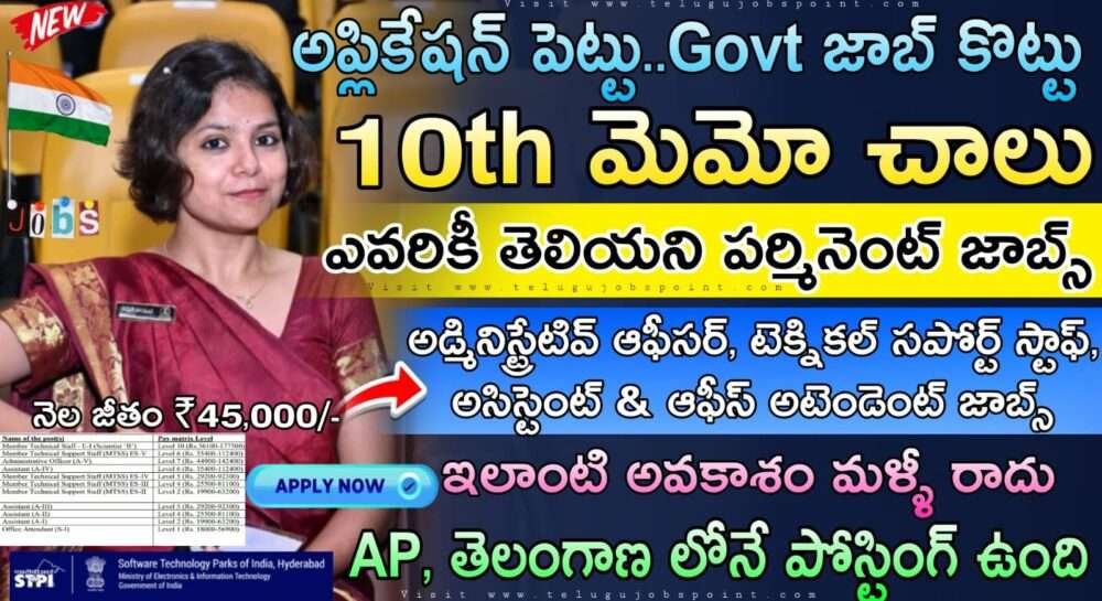 10th అర్హతతో పర్మనెంట్ అసిస్టెంట్ & ఆఫీస్ అటెండెంట్ ఉద్యోగ నోటిఫికేషన్ వచ్చేసింది | STPI Recruitment 2025 Apply Now