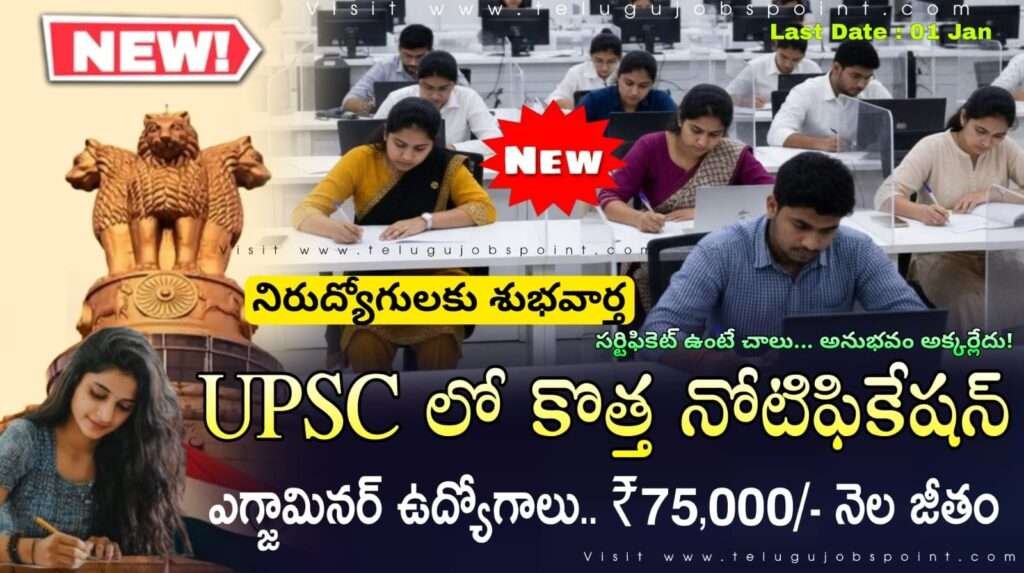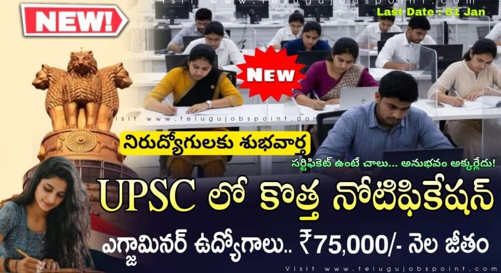 UPSC CGPDTM Recruitment 2025 Latest Examiner Job Notification 2025 Apply Now : నిరుద్యోగులకు శుభవార్త.. యూనియన్ పబ్లిక్ సర్వీస్ కమిషన్ (UPSC) లో ఎగ్జామినర్ ఉద్యోగుల కోసం నోటిఫికేషన్ విడుదల చేశారు. ఈ ఉద్యోగాల కోసం అప్లికేషన్ ప్రారంభం 13 డిసెంబర్, 2025 నుండి 01 జనవరి, 2026 వరకు కింది పోస్టులకు https://upsconline.nic.in వెబ్‌సైట్ ద్వారా ఎంపిక ద్వారా ప్రత్యక్ష నియామకానికి ఆన్‌లైన్ దరఖాస్తులు ఆహ్వానించబడ్డాయి.
