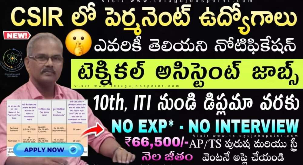 10th అర్హతతో టెక్నికల్ అసిస్టెంట్ మరియు టెక్నీషియన్ ఉద్యోగాల కోసం బంపర్ నోటిఫికేషన్ విడుదల | CSIR AMPRI Notification 2025 Apply Now