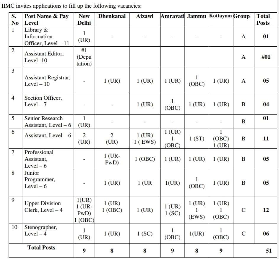 పోస్ట్ పేరు :: లైబ్రరీ & ఇన్ఫర్మేషన్ ఆఫీసర్, అసిస్టెంట్ ఎడిటర్, అసిస్టెంట్ రిజిస్ట్రార్, సెక్షన్ ఆఫీసర్, సీనియర్ రీసెర్చ్ అసిస్టెంట్, అసిస్టెంట్, ప్రొఫెషనల్ అసిస్టెంట్, జూనియర్ ప్రోగ్రామర్, అప్పర్ డివిజన్ క్లర్క్ & స్టెనోగ్రాఫర్ పోస్టులు ఉన్నాయి.