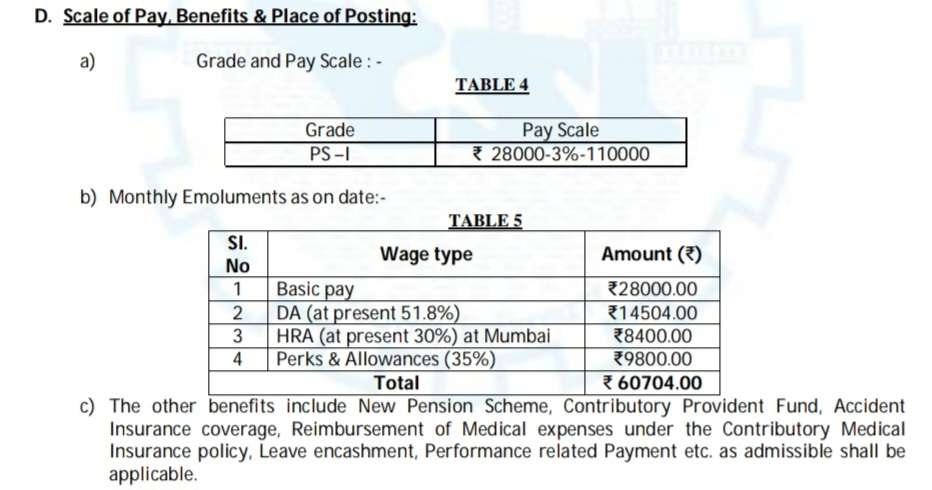 »నెల జీతం : నోటిఫికేషన్ లో రూ.₹28,000-3%-1,10,000/- మధ్యలో నెల జీతం ఇస్తారు. మొత్తం కలిపి స్టార్టింగ్ శాలరీ రూ.45,623/- to ₹60,704/- ఇస్తారు.