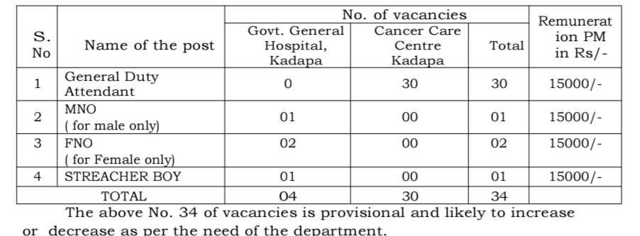 Latest AP GGH/CCC Attendant, MNO, FNO & Streacher Boy Job Recruitment 2026 Apply 34 Vacancy Overview :