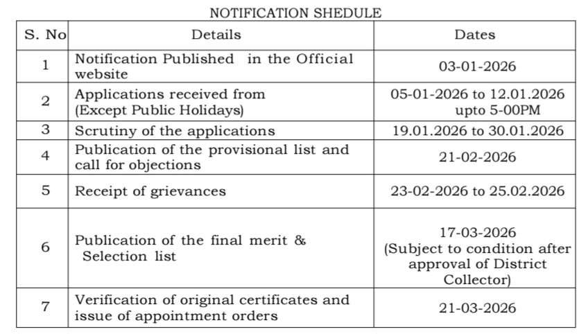 •ఆన్లైన్ దరఖాస్తుల స్వీకరణకు చివరి తేదీ: 12.01.2026 ( సాయంత్రం 05:00 గంటల లోపు)