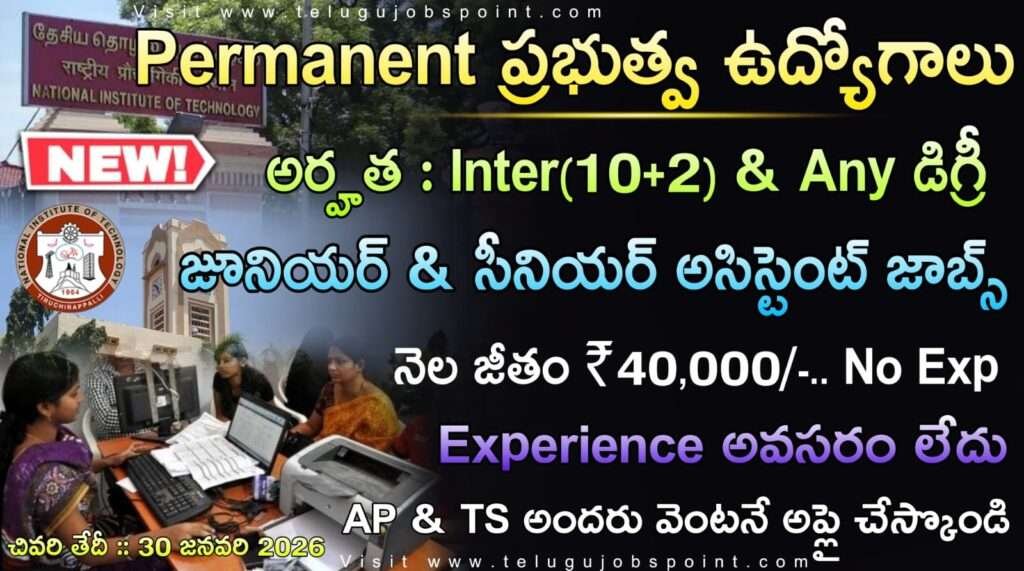 NITT Jobs : 12th అర్హతతో జూనియర్ & సీనియర్ అసిస్టెంట్ నోటిఫికేషన్ వచ్చేసింది| NITT Recruitment 2026 Apply Online Now