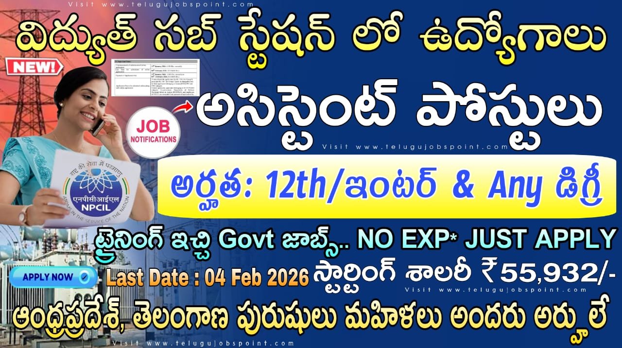 Free Jobs : విద్యుత్ సబ్ స్టేషన్ లో అసిస్టెంట్ & టెక్నీషియన్ నోటిఫికేషన్ విడుదల| NPCIL Recruitment 2026 Apply Now