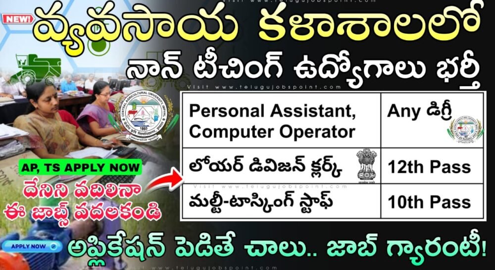 Agriculture Jobs : 10th అర్హతతో కేంద్ర వ్యవసాయ విశ్వవిద్యాలయంలో కంప్యూటర్ ఆపరేటర్, పర్సనల్ అసిస్టెంట్, UDC, LDC, అకౌంట్స్ అసిస్టెంట్, డ్రైవర్ & MTS నోటిఫికేషన్ వచ్చేసింది | CAU Recruitment 2026 Apply Now