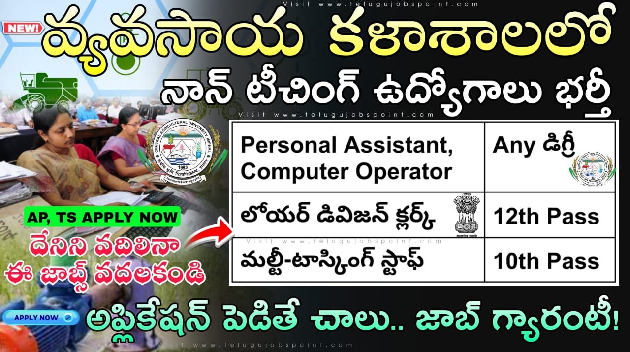 Agriculture Jobs : 10th అర్హతతో కేంద్ర వ్యవసాయ విశ్వవిద్యాలయంలో కంప్యూటర్ ఆపరేటర్, పర్సనల్ అసిస్టెంట్, UDC, LDC, అకౌంట్స్ అసిస్టెంట్, డ్రైవర్ & MTS నోటిఫికేషన్ వచ్చేసింది | CAU Recruitment 2026 Apply Now