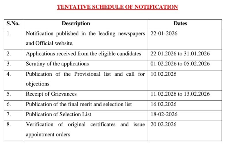 ఆన్‌లైన్ దరఖాస్తు సమర్పణకు చివరి తేదీ: 31/01/2026 వరకు ఉదయం 10:30 గంటల నుండి సాయంత్రం 5.00 గంటల వరకు (కార్యాలయ పనివేళల్లో) అందుబాటులో ఉంటుంది.