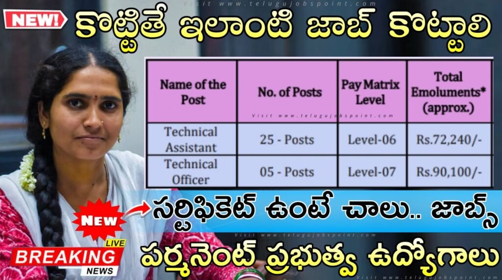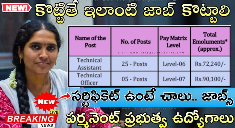 పోస్ట్ పేరు :: టెక్నికల్ అసిస్టెంట్ & టెక్నికల్ ఆఫీసర్ పోస్టులు ఉన్నాయి.