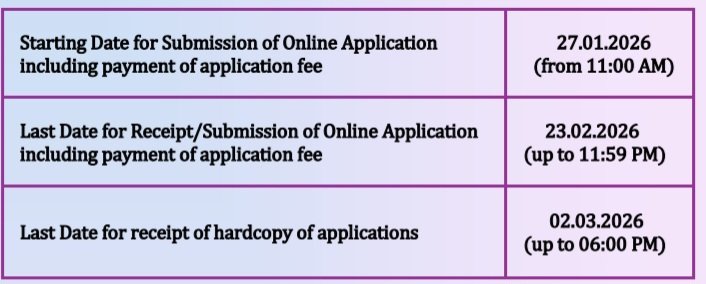 ఆన్‌లైన్ దరఖాస్తు సమర్పణ ప్రారంభ తేదీ : 27.01.2026 (ఉదయం 11:00 గంటల నుండి)