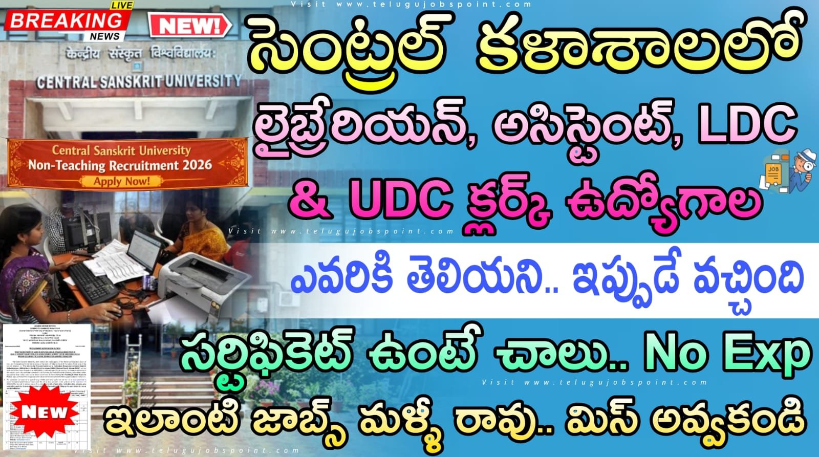 LDC Jobs : కొత్త గా సెంట్రల్ సంస్కృత యూనివర్సిటీ లో క్లర్క్, అసిస్టెంట్ & లైబ్రరీ నోటిఫికేషన్ వచ్చేసింది | Latest Central Sanskrit University Recruitment 2026 Apply Now