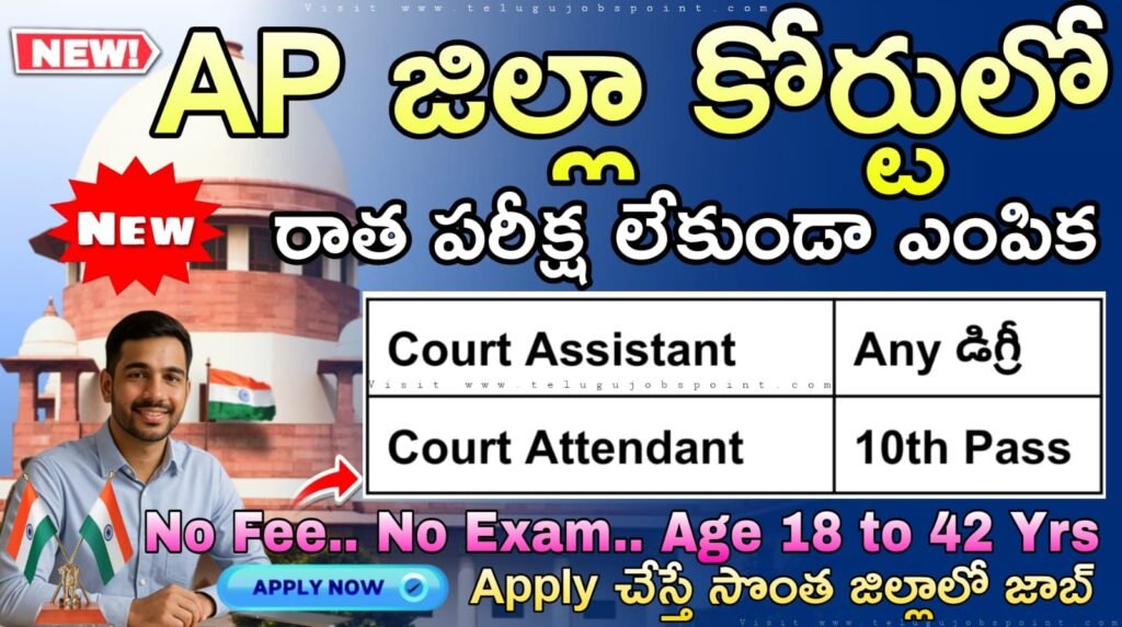AP Court Jobs : రాత పరీక్ష లేకుండా జిల్లా కోర్టు అసిస్టెంట్ మరియు కోర్టు అటెండెంట్ నోటిఫికేషన్ వచ్చేసింది | AP District Court Recruitment 2026 Apply Now