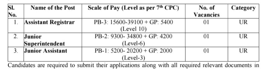•అసిస్టెంట్ రిజిస్ట్రార్, జూనియర్ సూపరింటెండెంట్ & జూనియర్ అసిస్టెంట్ ఉద్యోగాలు భర్తీ చేస్తున్నారు. మొత్తం ఉద్యోగాలు 03 ఖాళీలు ఉన్నాయి.