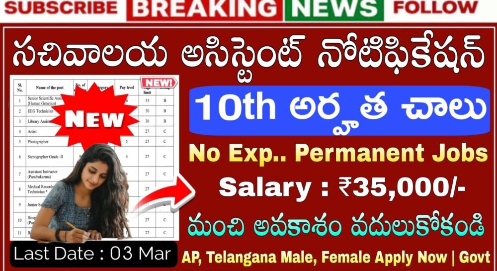 పోస్ట్ పేరు :: జూనియర్ సెక్రటేరియల్ అసిస్టెంట్, లైబ్రరీ అసిస్టెంట్, స్టెనోగ్రాఫర్ గ్రేడ్ -II & మెడికల్ రికార్డ్స్ టెక్నీషియన్ పోస్టుకు ఉన్నాయి.