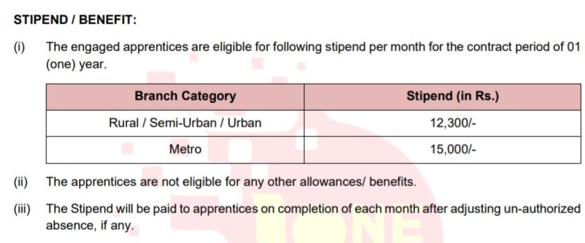 •ఈ నోటిఫికేషన్ లో గ్రామీణ/సెమీ-అర్బన్ / అర్బన్ ప్రాంతాలలో స్టైపెండ్ (రూ.లలో)₹12,300/- మెట్రో ప్రాంతాలలో 15,000/- జీతం ఇస్తారు.