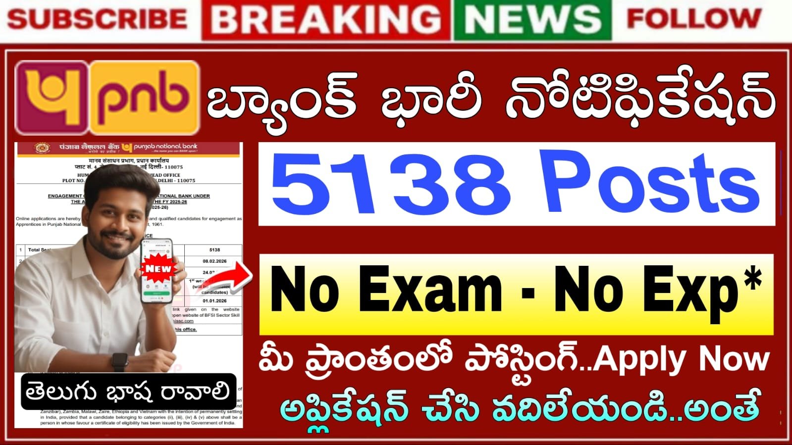 తెలుగు భాష వస్తే చాలు… Punjab National బ్యాంకులో భారీ ఉద్యోగాలు, Exam లేదు | Punjab National Bank (PNB) Recruitment 2026 Apply Now