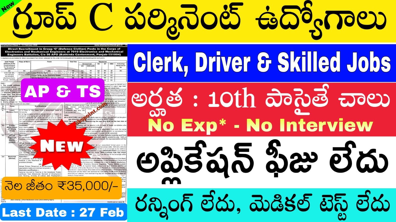 Free Jobs : No Fee.. 10th అర్హతతో DGEME లో గ్రూప్ సి క్లర్క్ ఉద్యోగ నోటిఫికేషన్ వచ్చేసింది | Army DGEME 7010 EME Bn Group C Recruitment 2026 Apply Now