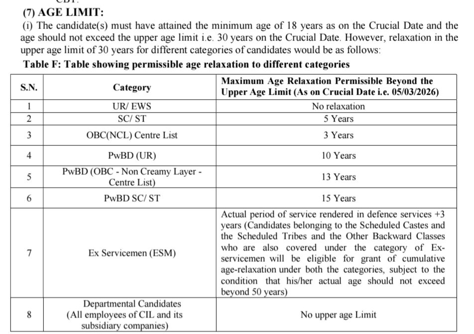 •వయోపరిమితి: అభ్యర్థి(లు) కీలక తేదీ నాటికి కనీస వయస్సు 18 సంవత్సరాలు నిండి ఉండాలి మరియు వయస్సు గరిష్ట వయోపరిమితిని అంటే కీలక తేదీ నాటికి 30 సంవత్సరాలు మించకూడదు.