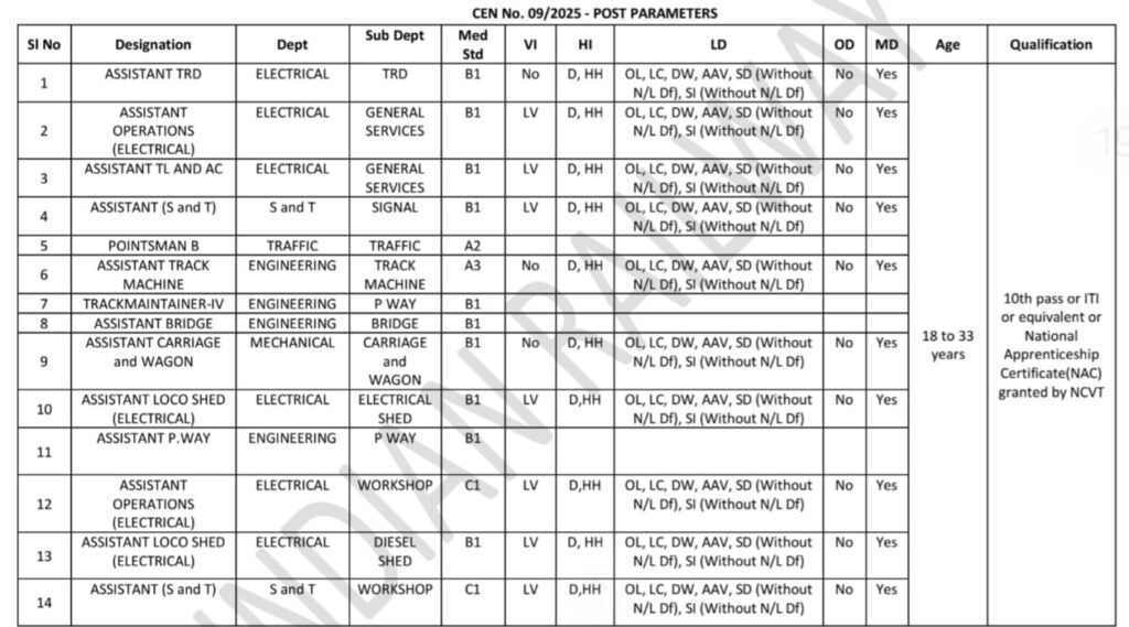 పోస్ట్ వివరాలు : అసిస్టెంట్, పాయింట్స్ మాన్, అసిస్టెంట్ లోకో హెడ్, ట్రాక్ మెయింటినర్, అసిస్టెంట్ ఆపరేటర్ తదితర ఉద్యోగాలు ఉన్నాయి.