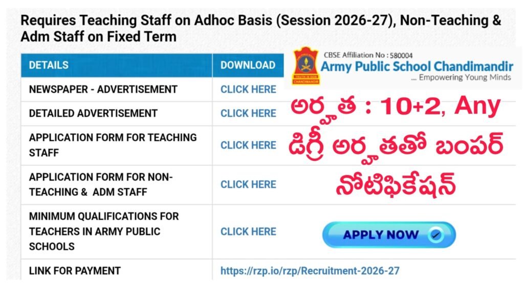 12th అర్హతతో ఆర్మీ పబ్లిక్ స్కూల్ లో కొత్త నోటిఫికేషన్ వచ్చేసింది | APS Notification 2026 Apply Now