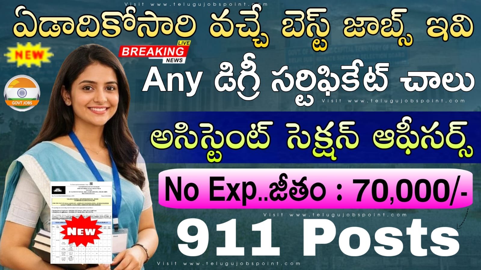 Latest Jobs 2026 : కేవలం Any డిగ్రీ అర్హతతో అసిస్టెంట్ సెక్షన్ ఆఫీసర్ 576 ఉద్యోగాలు.. నెల జీతం 44,900-1,42,400/-