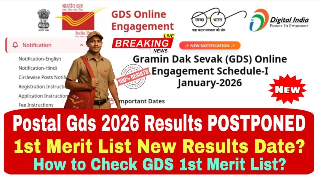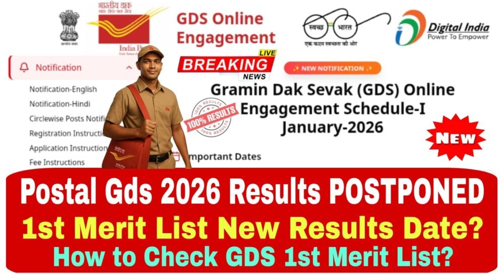 Post GDS Result 2026 Date : భారత తపాల శాఖ ఆధ్వర్యంలో వివిధ పోస్టల్ శాఖలలో గ్రామీణ డాగ్ సేవక్ (28,635) ఉద్యోగాల భర్తీకి సంబంధించి డ్రాప్ నోటిఫికేషన్ లో ఫిబ్రవరి 28 విడుదల కావలసిన ఫస్ట్ మెరిట్ లిస్ట్ కొన్ని టెక్నికల్ కారణాలుగా వాయిదా వేసినట్లు తెలుస్తుంది. అయితే GDS రిజల్ట్స్ మార్చి మొదటి వారంలో ఎప్పుడైనా విడుదల ఏ అవకాశముంది. ఎప్పుడు అనేది ఇప్పుడు తెలుసుకుందాం..