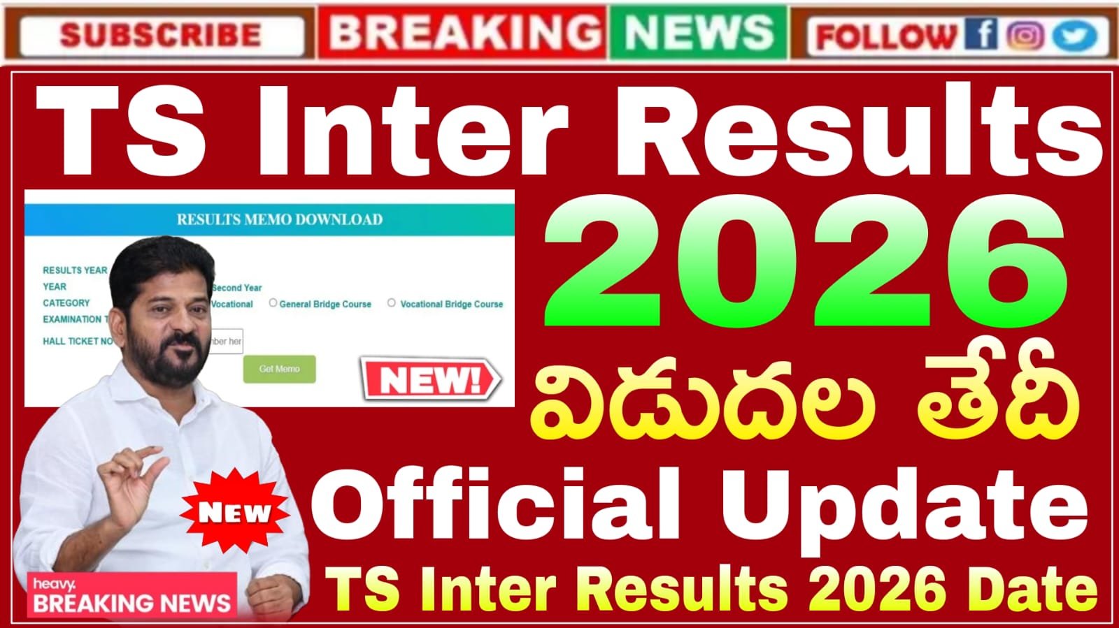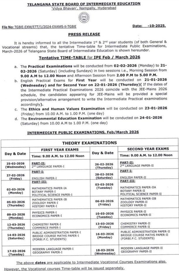 తెలంగాణ ఇంటర్మీడియట్ 1st & 2nd ఇయర్ ఫలితాలు 2026 విడుదల తేదీ