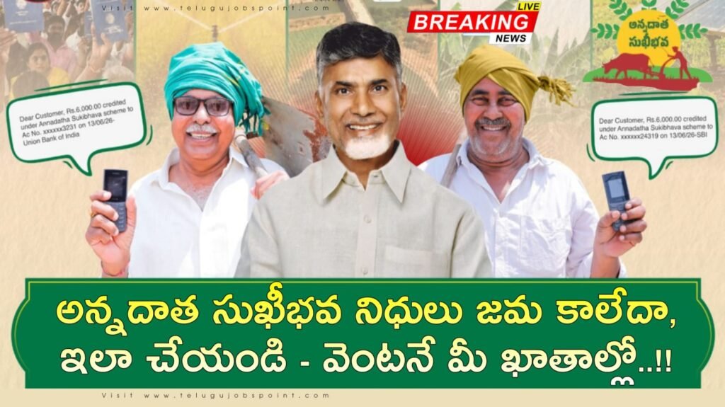 Annadatha Sukhibhava 2026 payment not received reasons solutions All Details in Telugu : ఆంధ్రప్రదేశ్ లో రైతులకు అలర్ట్.. ఆంధ్రప్రదేశ్ ప్రభుత్వం 13 మర్చి అన్నదాత సుఖీభవ నిధులు మూడో విడుదల చేసింది. అలాగే కేంద్రం పీఎం కిషన్ కింద 2000 విడుదల, ఆంధ్రప్రదేశ్ ప్రభుత్వం పథకం కింద 4000 జమ చేసిన, ఒక్కో రైతు ఖాతాలో 6000 జమ కావడం జరిగింది. కొంతమందికి అన్నదాత సుఖీభవ నిధులు జమ కాని పరిస్థితిలో ఎక్కడ ఫిర్యాదు చేయాలి, దానికి గల కారణాలేంటి అది ఇప్పుడు మనం తెలుసుకుందాం.