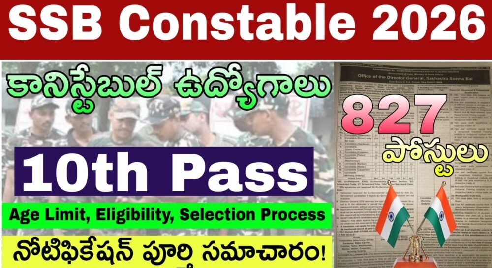 Constable Jobs : 10th అర్హతతో SSB లో కానిస్టేబుల్ నోటిఫికేషన్ విడుదల | SSB Constable Tradesman and Driver Recruitment 2026 Apply Now