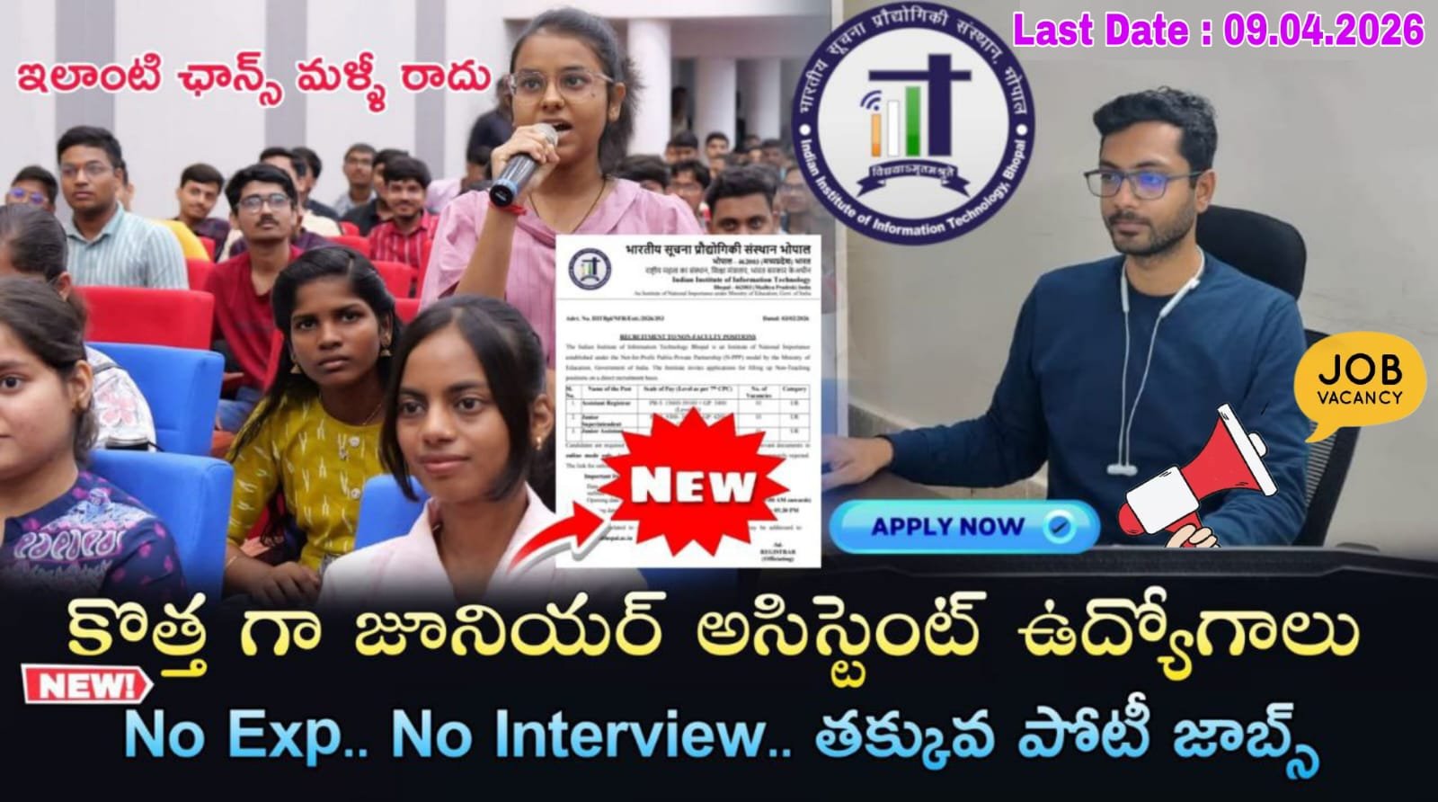 IIT Mandi Junior Assistant Job Notification 2026 Apply Now :  ఇండియన్ ఇన్‌స్టిట్యూట్ ఆఫ్ టెక్నాలజీ (ఐఐటి) లో జూనియర్ అసిస్టెంట్ బోధనేతర పోస్టుల కోసం భారత జాతీయుల నుండి ఆన్‌లైన్ దరఖాస్తులను ఆహ్వానిస్తోంది. ఆన్‌లైన్ దరఖాస్తు ఫారాలను సమర్పించడానికి చివరి తేదీ 09.04.2026 23:59 గంటలు (IST) లోపు అర్హతా ప్రమాణాలు ఆన్‌లైన్ దరఖాస్తు ఫారాలను సమర్పించే చివరి తేదీ నాటికి నిర్ణయించబడతాయి. ఆన్‌లైన్ ఆవేదన సంస్థ వెబ్‌సైట్ (www.jitmandi.ac.in) తథా వెబ్ లింక్ (https://liitmandint.samarth.edu.in/) లో అందుబాటులో ఉంది.