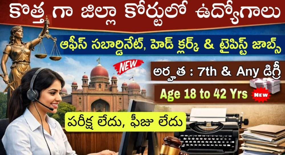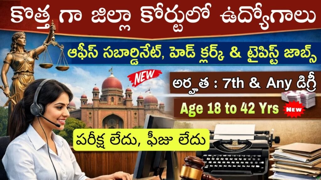 AP District Court Jobs : 7th, Any డిగ్రీ అర్హతతో ఆఫీస్ అటెండర్, హెడ్ క్లర్క్ & టైపిస్ట్ ఉద్యోగం నోటిఫికేషన్ వచ్చేసింది | AP District Court Head Clerk,Steno-cum-typist & Office Subordinate Notification 2026 Apply Now