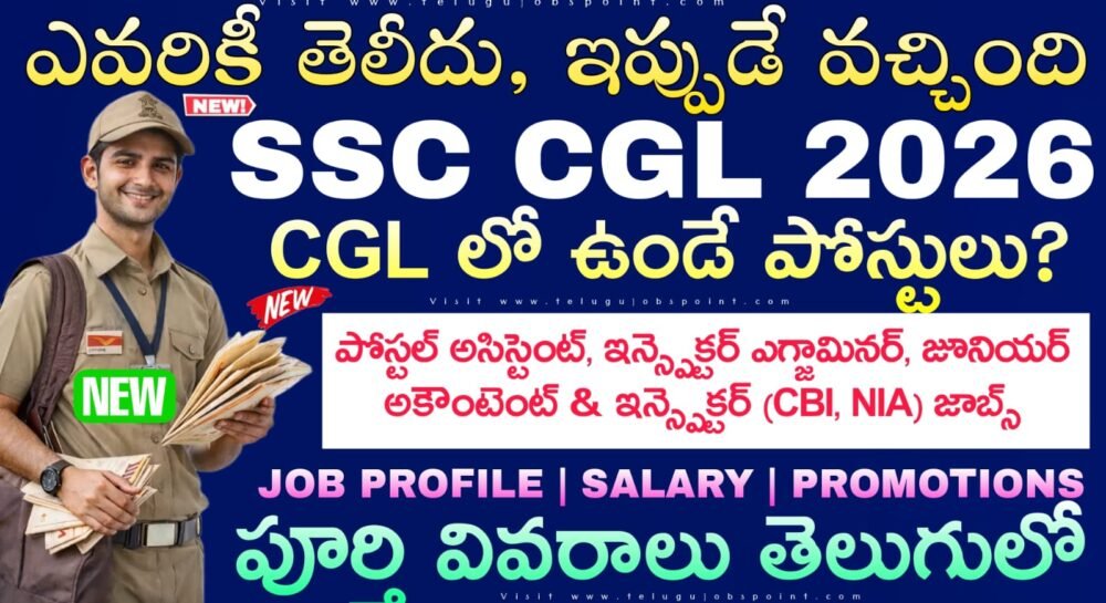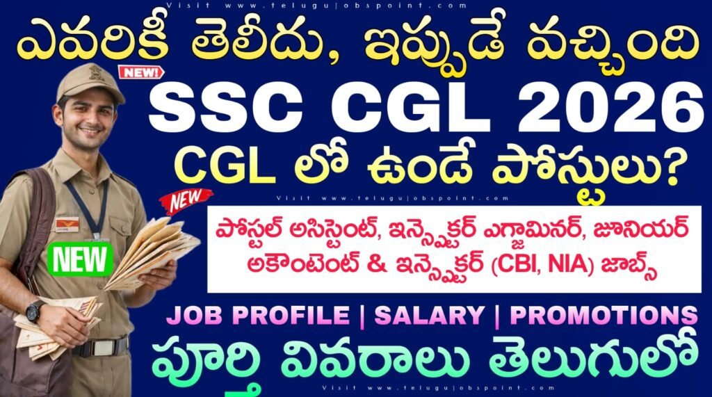 SSC CGL 2026 notification soon over 15,000 vacancies expected for Postal Assistant/ Sorting Assistant & Tax Assistant Jobs : నిరుద్యోగులకు భారీ శుభవార్త త్వరలో.. స్టాఫ్ సెలక్షన్ కమిషన్ (SSC) ద్వారా Combined Graduate Level Examination (CGL) 2026 నోటిఫికేషన్ రిలీజ్ చేయనున్నట్లు నేషనల్ మీడియా లో వార్తలు వస్తున్నాయి. ఈ నోటిఫికేషన్ లో దాదాపు 15వేల అసిస్టెంట్ సెక్షన్ ఆఫీసర్, ఇన్స్పెక్టర్ అఫ్ ఇన్కమ్ టాక్స్, అసిస్టెంట్ అకౌంట్స్ ఆఫీసర్, ఇన్స్పెక్టర్ (ఎగ్జామినర్), ఎస్సై, అసిస్టెంట్ సెక్షన్ ఆఫీసర్, టాక్స్ అసిస్టెంట్ & పోస్టల్ అసిస్టెంట్ / సోర్టింగ్ అసిస్టెంట్ తదితర గ్రూప్-B, C పోస్టులు ఉన్నాయి. దీనికి డిగ్రీ అర్హత ఉండాలి. వయసు 18 నుంచి 30 సంవత్సరాల మధ్యలో ఉండాలి. నెల జీతం రూ.44,900 to రూ.1,42,400/- ఇస్తారు. నోటిఫికేషన్ విడుదల అయ్యాక దరఖాస్తు తేదీలు వెల్లడించనున్నారు.