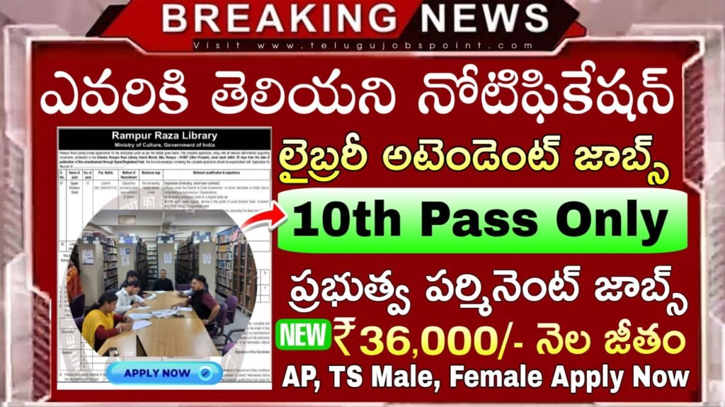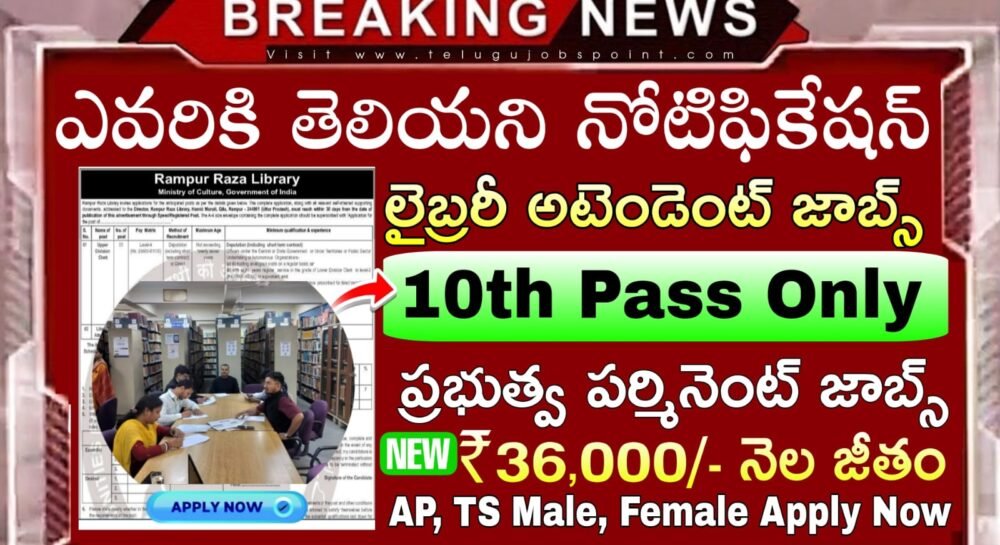 Library Attendant Jobs : కేవలం 10th అర్హతతో లైబ్రరీ అటెండెంట్ఉద్యోగ నోటిఫికేషన్ | Rampur Raza Library Recruitment 2026 Apply Now